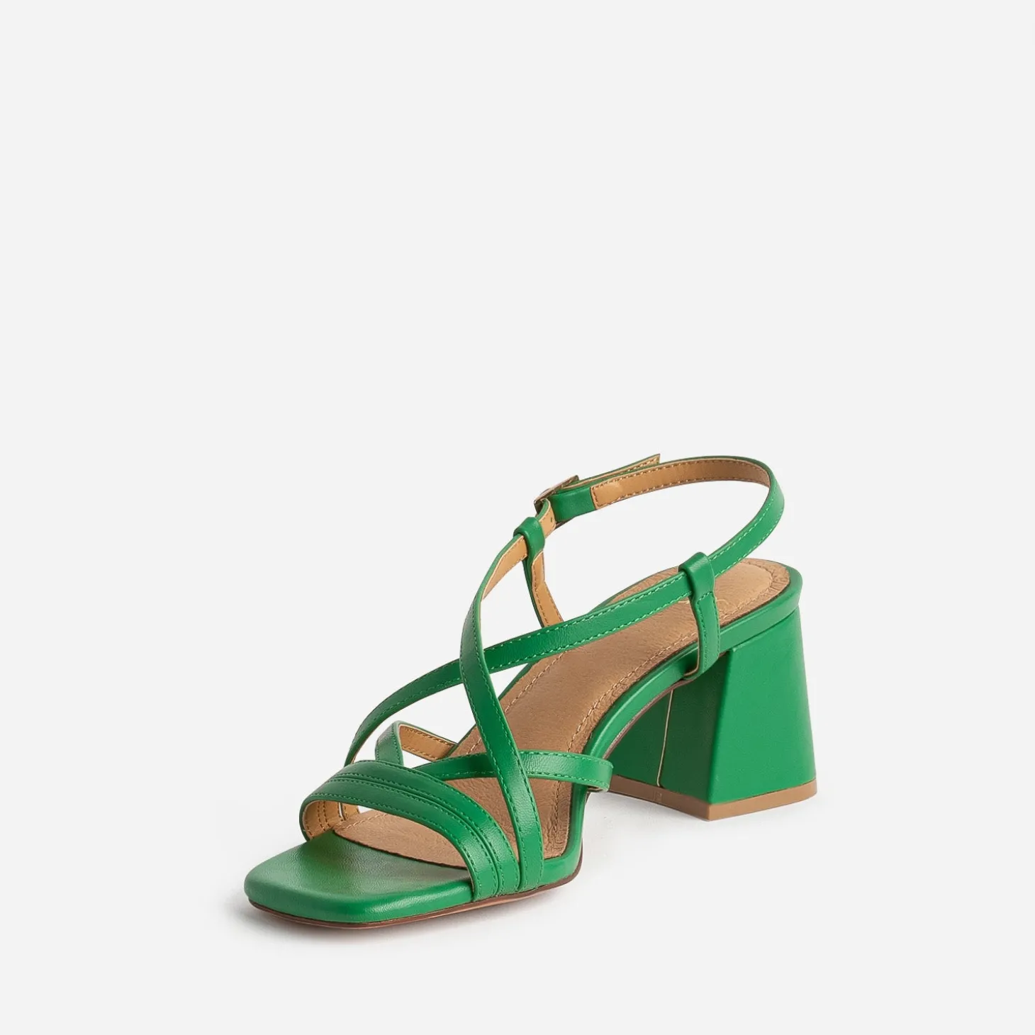 Mettez de la couleur à vos pieds. Et vos tenues passent instantanément en mode été ! En matière synthétique lisse, cette sandale femme se décline en coloris vert. Le jeu de fines brides est mis en valeur par un bout carré et un talon flare de 6,5 cm. Pour une cérémonie avec une robe à imprimé tropical, ou pour le quotidien avec un top blanc et un pantalon fluide turquoise ou parme, elle s’adapte à toutes les envies.