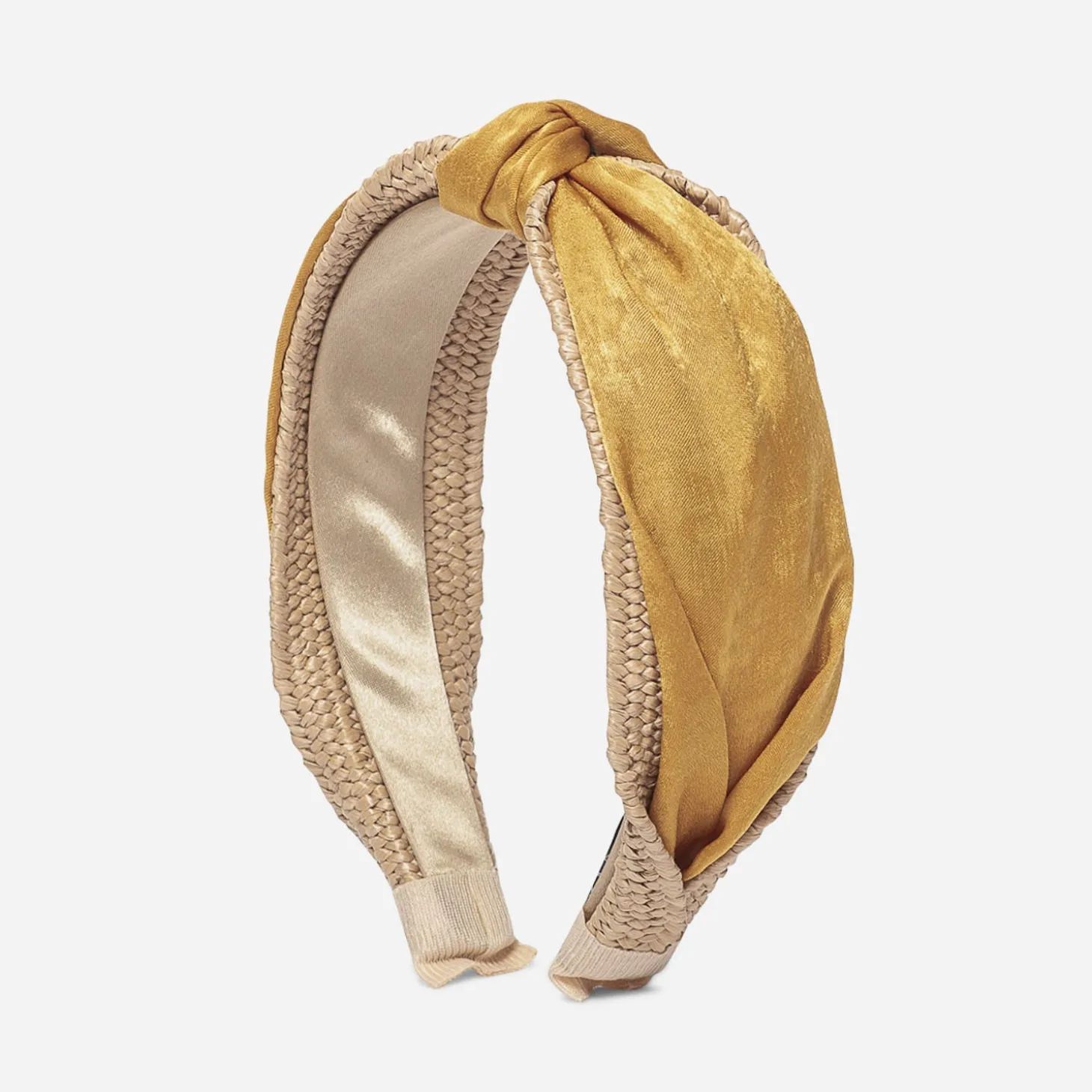 Serre-tête TEXTO jaune safran satiné sur effet raphia
