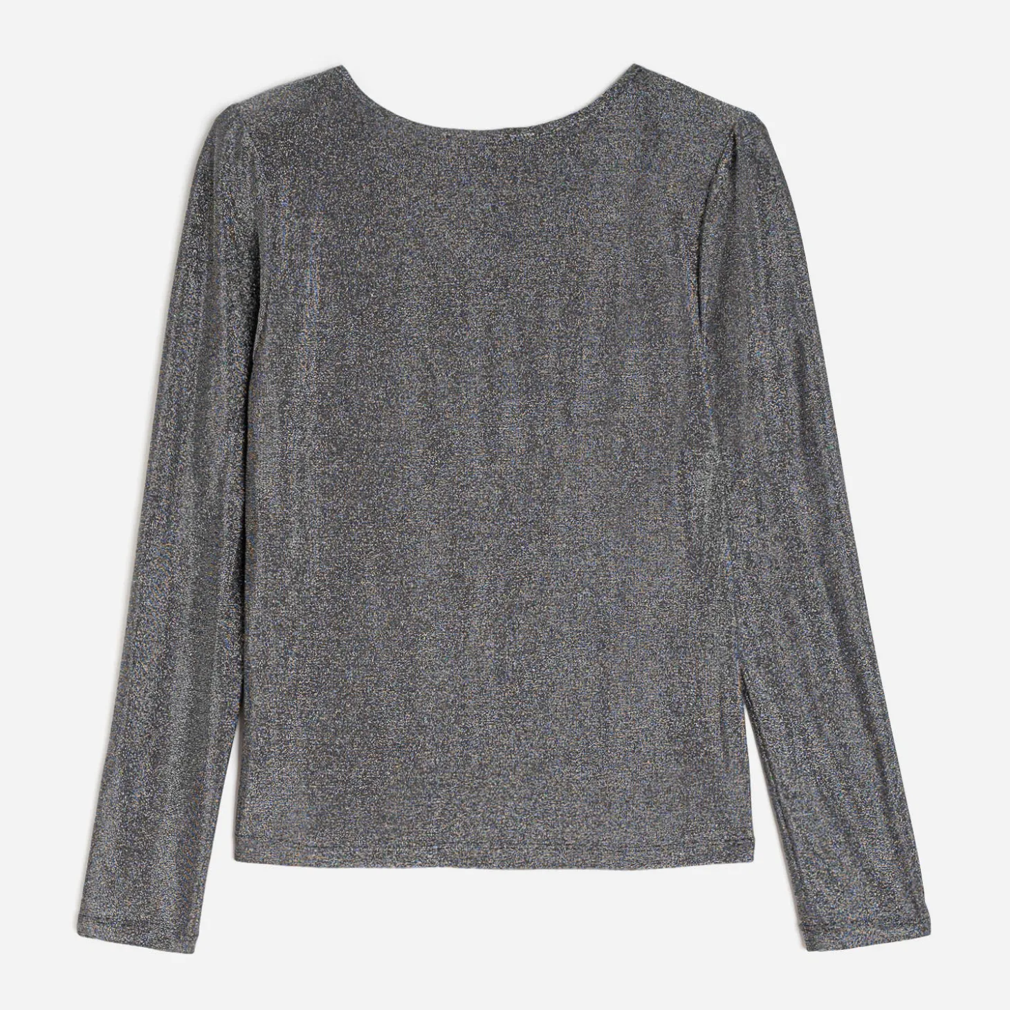 Envie de twister vos looks du quotidien en looks de fête ? Enfilez ce tee-shirt revisité. En maille métallisée, il opte pour le gris argenté, facile à jouer avec du noir et les épaulettes structurent le modèle, d’une touche 80’s.