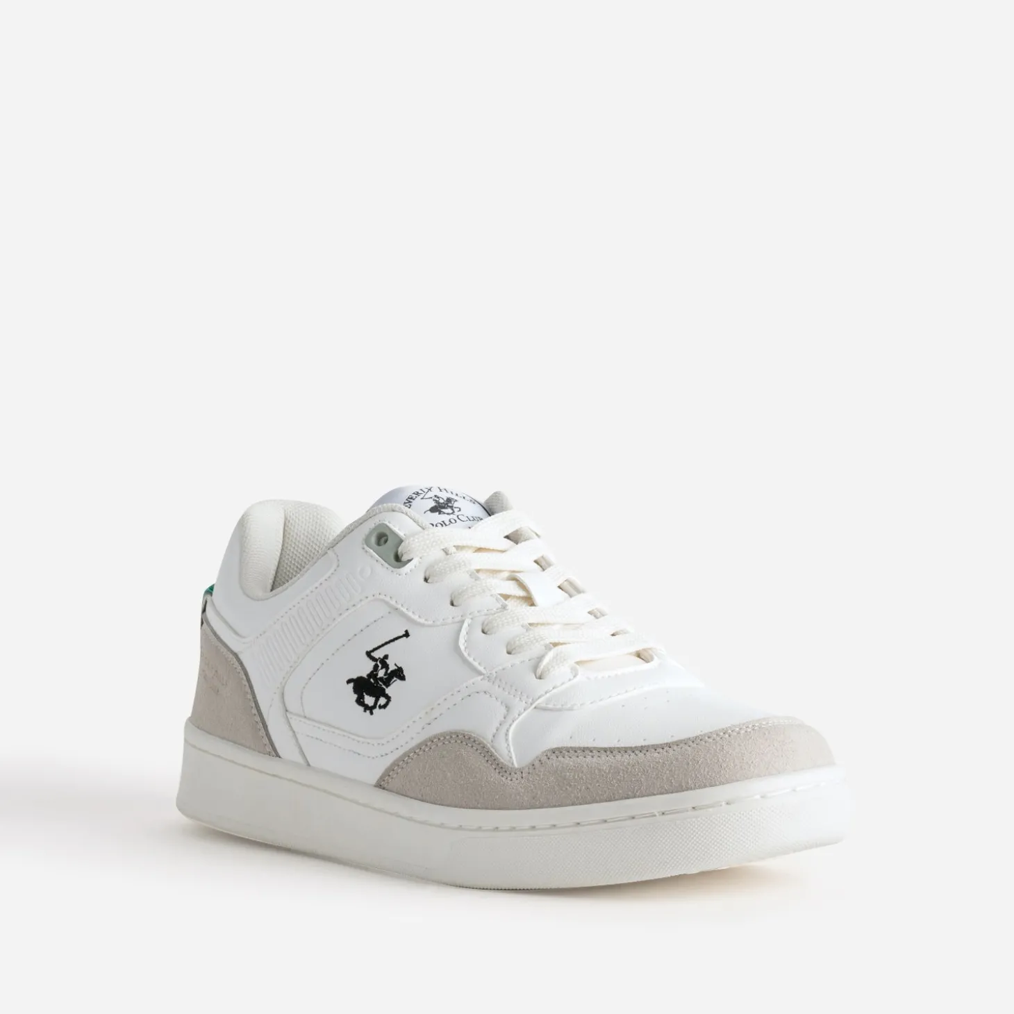 Cette tennis pour homme est une proposition simple, dans l’air du temps. En matière synthétique lisse, elle est soulignée de détails beiges et d’un contrefort vert vif. Les logos rythment la languette par une étiquette tissée, le côté par une broderie, l’arrière par un marquage métallisé. Un modèle à préférer avec une tenue décontractée, polo blanc et pantalon chino beige.