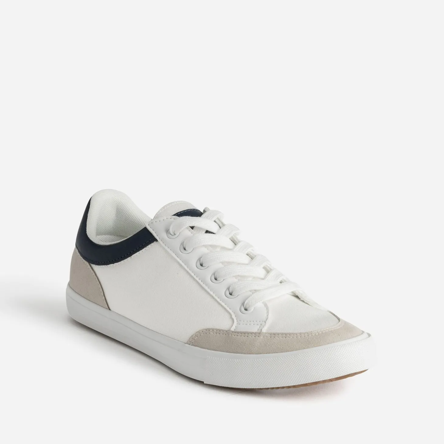 70% de coton, 30% de matières synthétiques lisse et suédée, cette tennis pour homme devient plus légère, pour s’adapter à la saison. Blanche, elle est soulignée degris clair sur le bout et le contrefort, et de bleu marine sur le col de la tige. Marinière classique sur jean gris, restez dans les tonalités assorties.