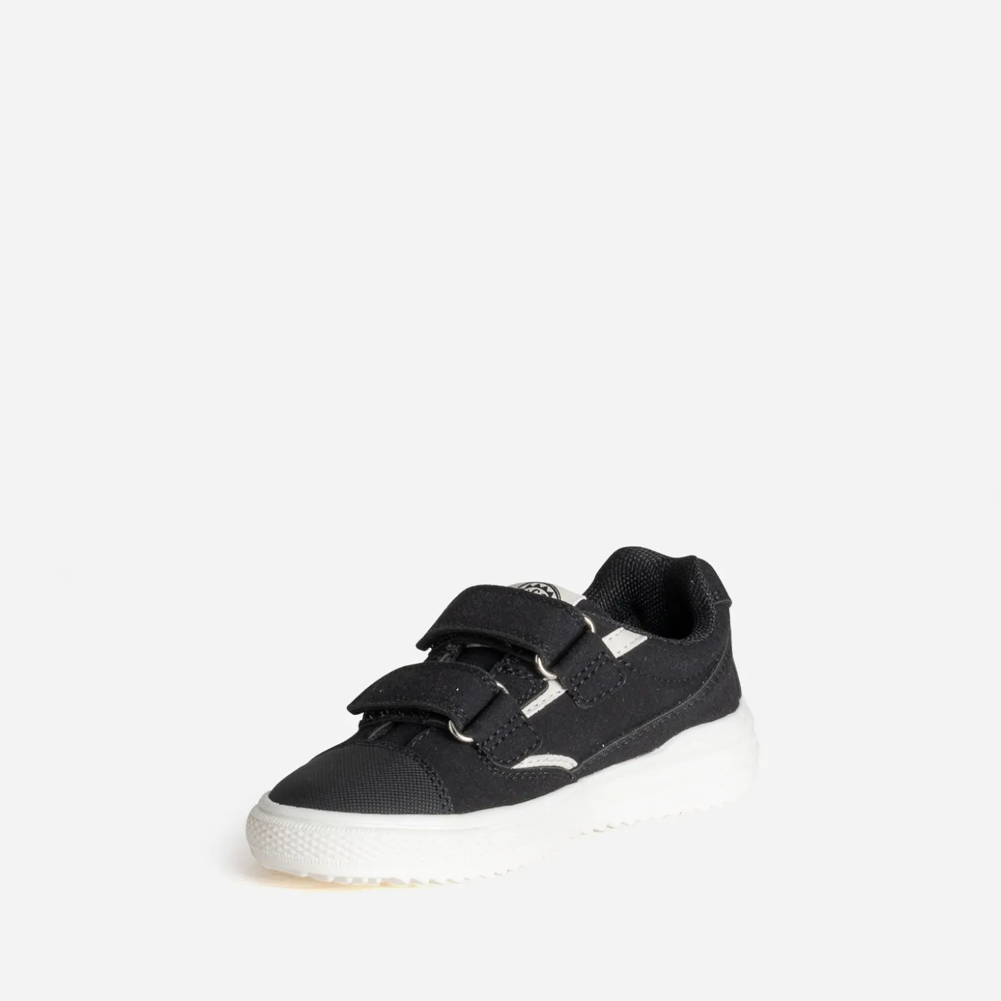 Revenir aux classiques a souvent du bon. C’est l’idée de cette tennis pour petit enfant. En toile noire, elle est rythmée de découpes blanches sur les côtés. Le bout est renforcé par une matière synthétique rigide, et la semelle est crantée, pour une meilleure adhérence. Elle se ferme par deux scratchs, pour l’accompagner dans son autonomie. Un modèle intemporel, facile à coordonner avec les tenues du quotidien.
