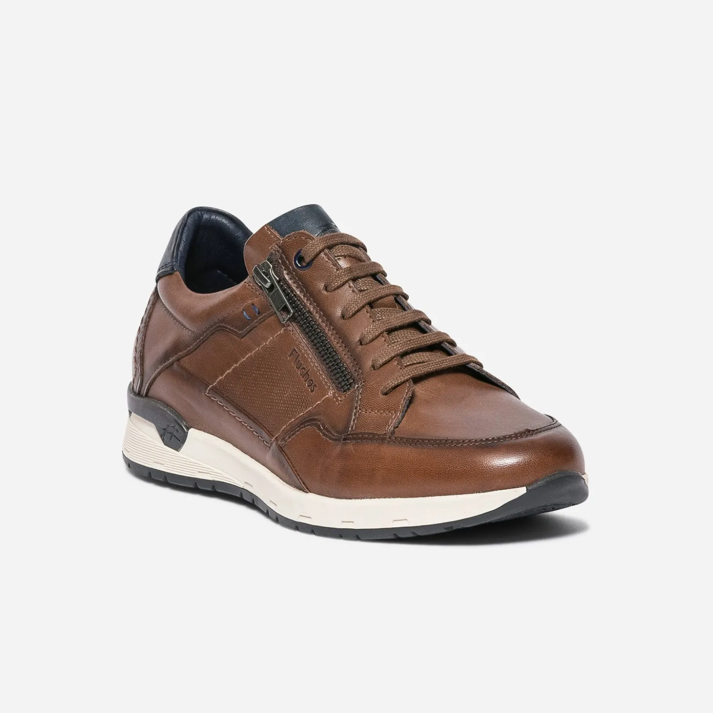 Adeptes des tennis en toutes circonstances ? Essayez ce modèle en cuir marron, rehaussé de touches marine sur la languette et le contrefort. Fermée par un lacet, elle possède aussi un zip sur le côté, pour faciliter l’entrée et la sortie du pied.