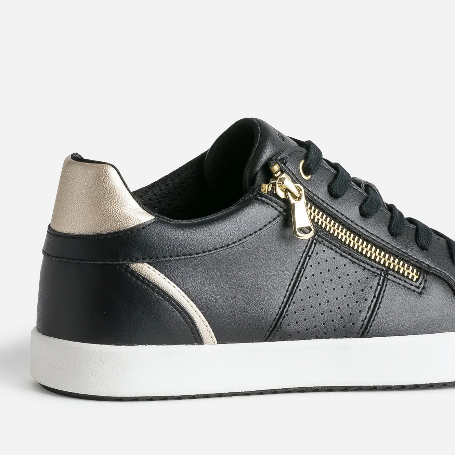 Cette tennis pour femme séduit d’abord par son coloris noir, sobre et intemporel, rehaussé de découpes et de détails métallisés dorés. Elle séduit ensuite par sa semelle extérieure respirante brevetée, garantissant respiration et amorti optimal pour absorption des impacts. L’enfilage est facilité par un lacet et un zip extérieur. Un modèle tendance, au confort supérieur.