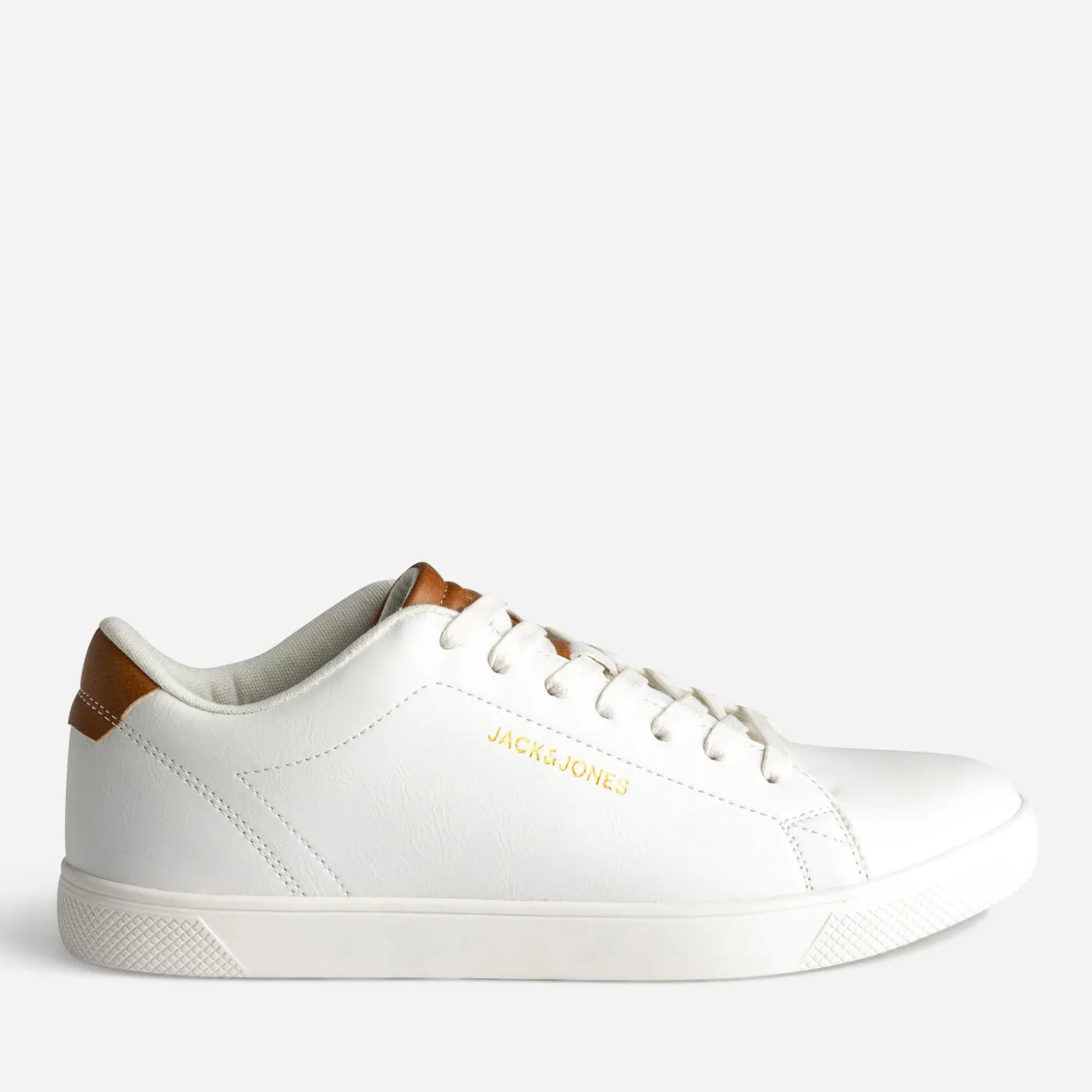 Epurez votre look… par les pieds, avec cette tennis pour homme. Tige basse, matière synthétique lisse, coloris blanc, elle se laisse twister d’une touche camel, sur la languette et le contrefort. Un modèle tendance, avec tous vos looks du quotidien.