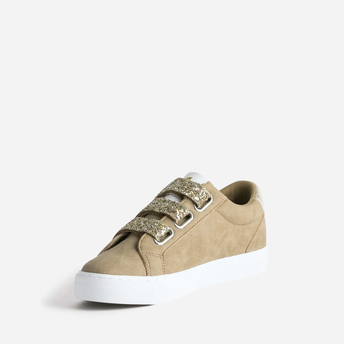 Cette tennis pour femme est une création qui mixe matière synthétique et textile. Déclinée en coloris camel, elle marque son originalité par une fermeture à 3 scratchs recouverts de paillettes dorées et un contrefort à embossage et imprimé effet python assorti. La marque affiche ses logos dorés sur le côté et le contrefort. Un modèle idéal dès l’inter-saison, avec un look dans les tons bleus ou naturels.
