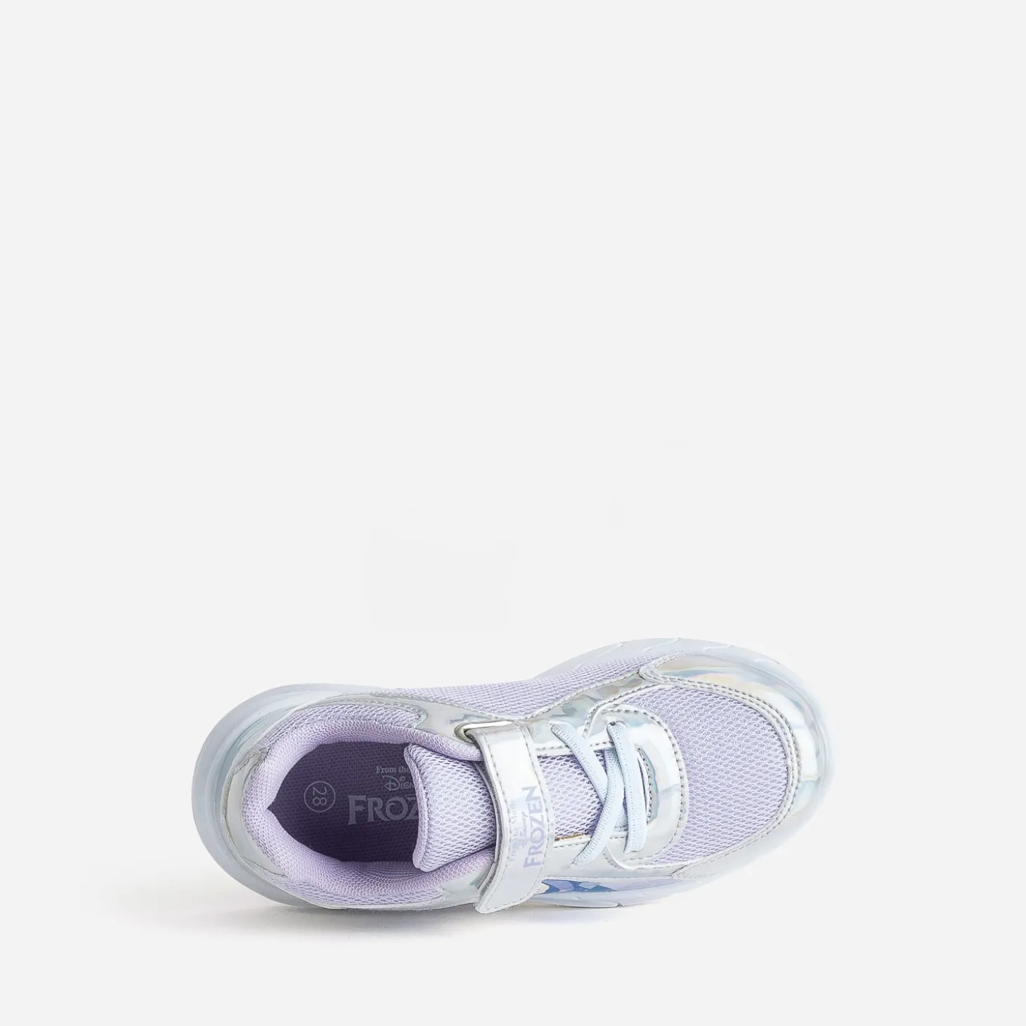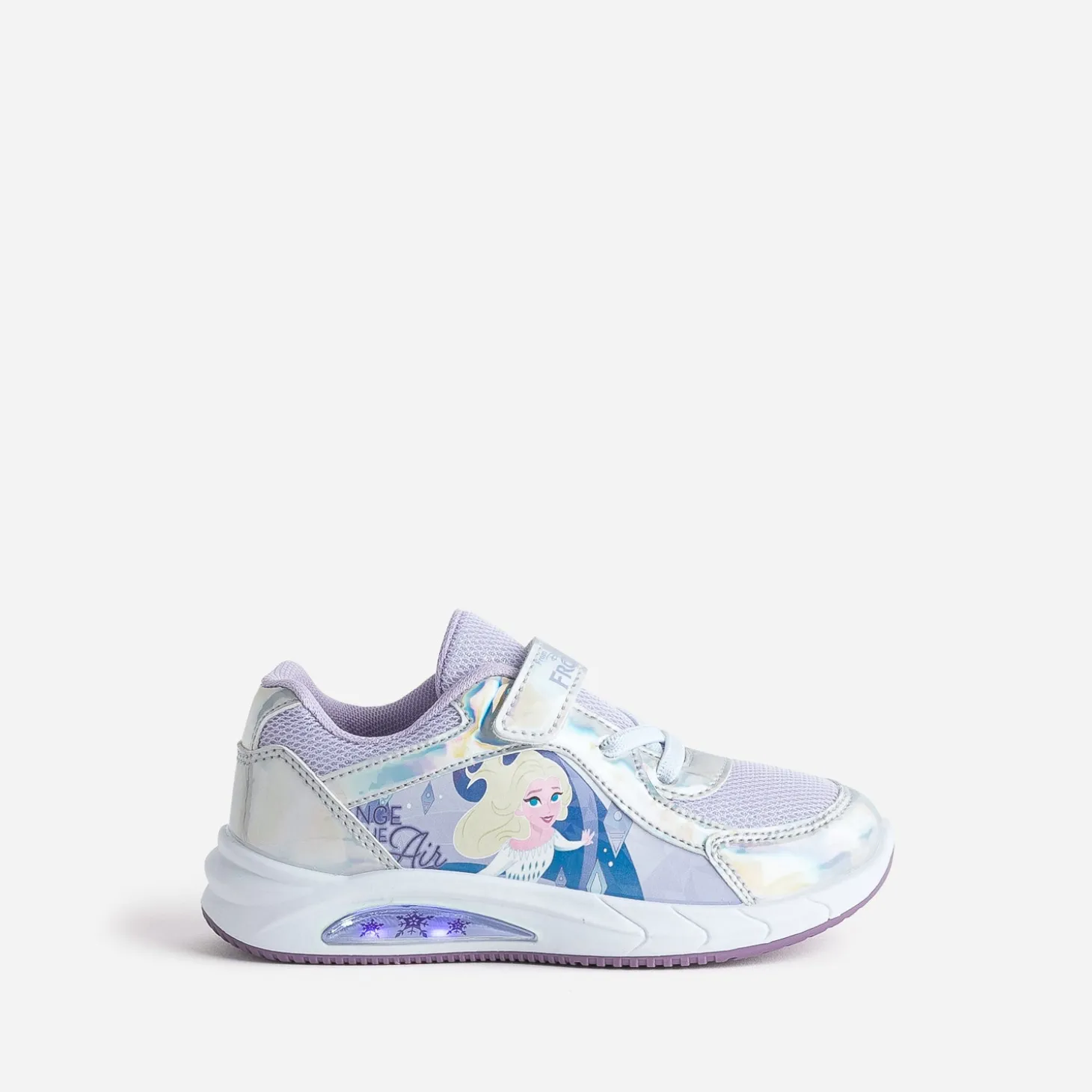 Du matin au soir et du soir au matin, elle n’a d’yeux que pour elle ! Chaussez, votre fille, d’une paire de tennis à l’effigie d’Elsa ! Matière synthétique iridescent et mesh parme s’associent pour un effet ‘glacé’ renforcé par une finition irisée, des motifs cristaux sur les côtés et des flocons clignotants dans la semelle. Le voyage au royaume d’Arendelle commence ici !