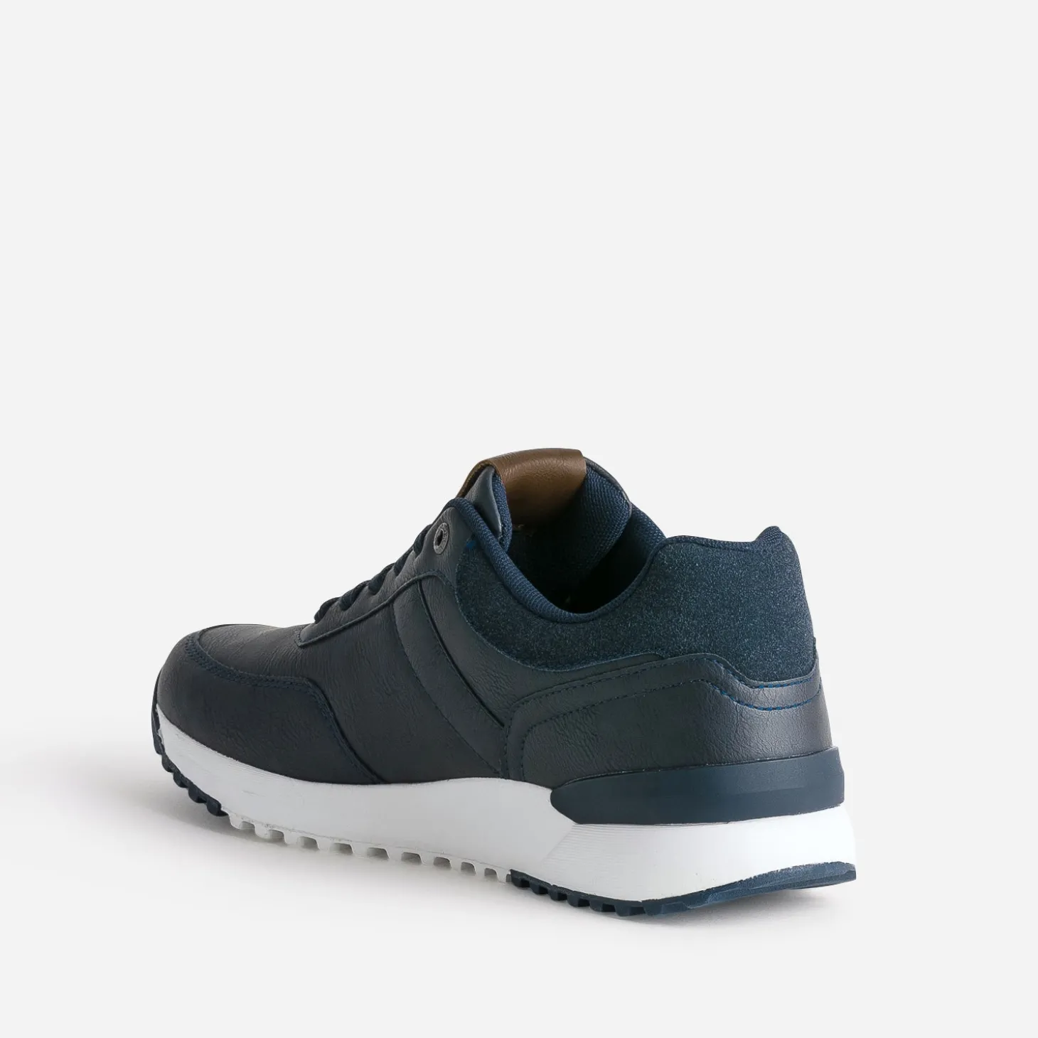 Dans la famille des couleurs sobres, intemporelles et indémodables, misez sur le bleu marine. Esprit running, elle propose un jeu de matières discret sur le haut de la tige. Un modèle à privilégier absolument, avec une tenue décontractée.