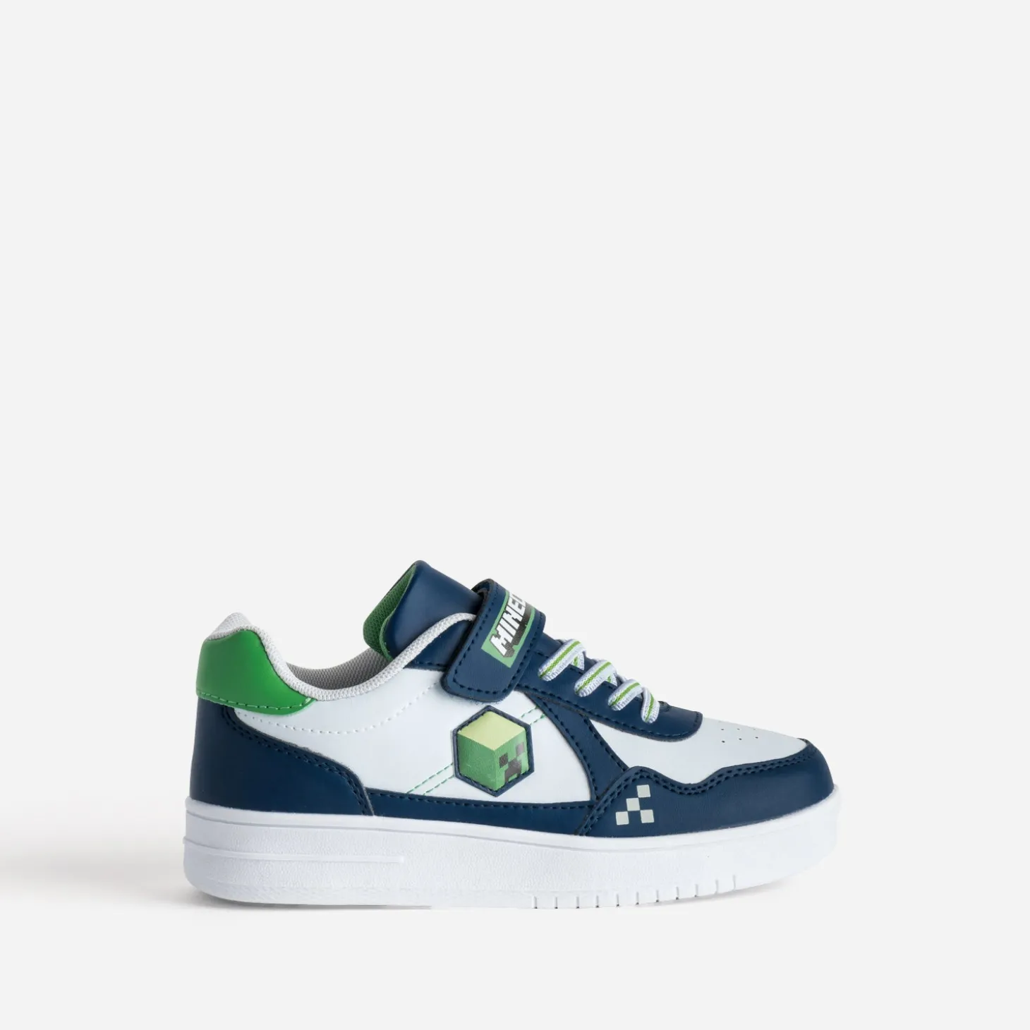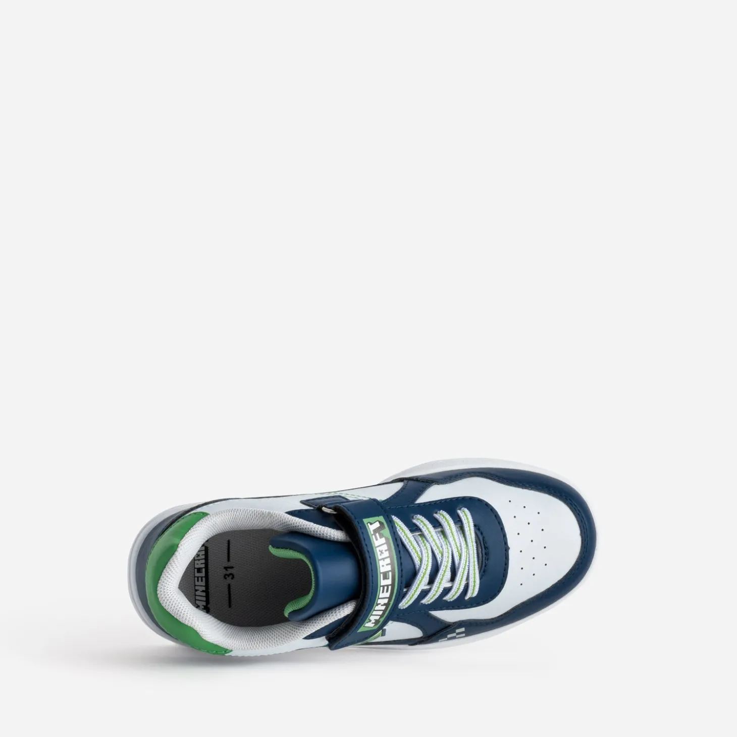 Cette tennis pour enfant reprend les codes du jeu vidéo. Par ses couleurs, bleu marine, blanc et vert. Par ses visuels : cube en 3D et pixels. Par son logo, posé sur le scratch, en renfort du lacet élastiqué. Un modèle parfait pour revendiquer sa passion, jusqu’en dehors de l’écran.