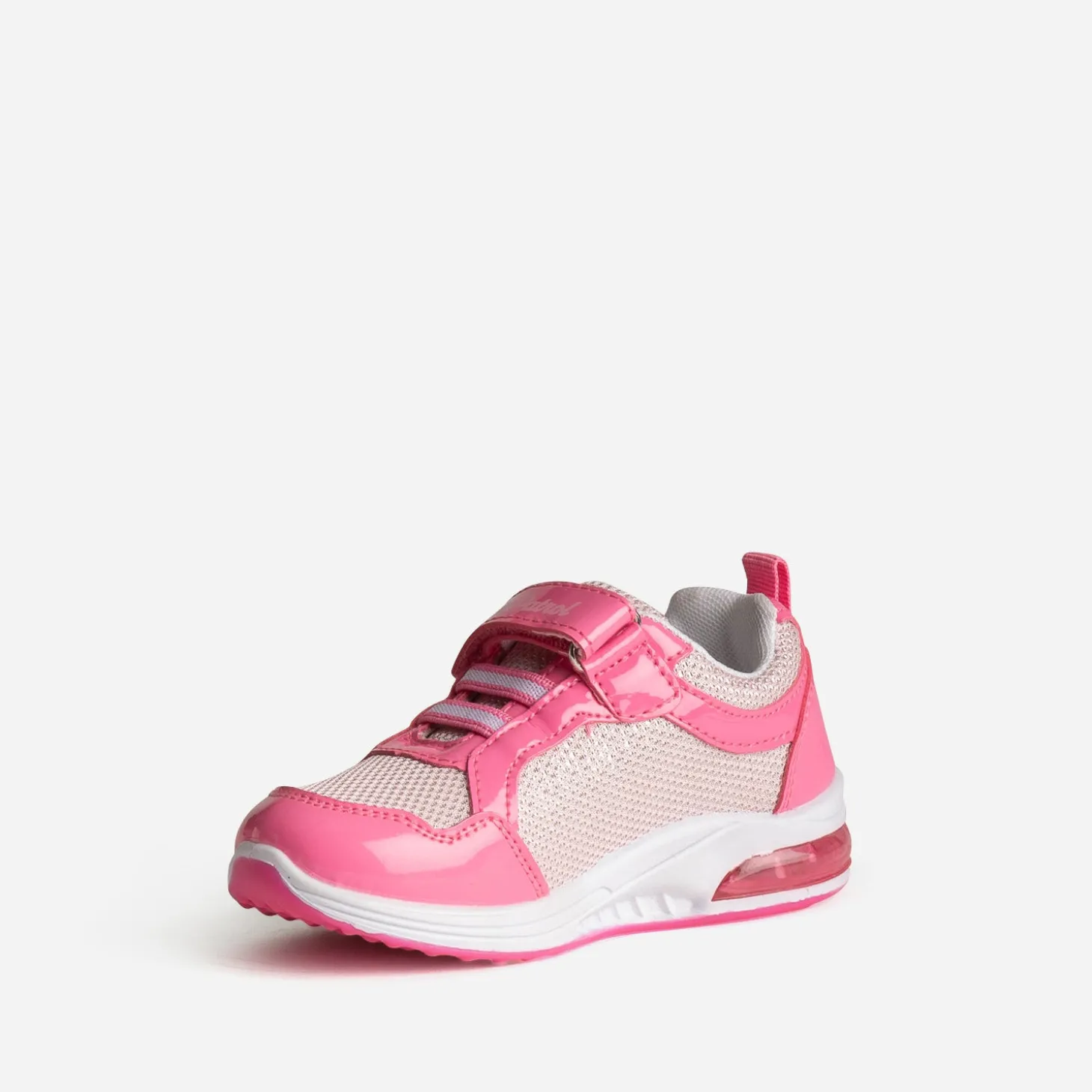 Elle sera d’abord attirée par le visage de Stella, tout sourire. Elle appréciera ensuite la matière lisse, rose et vernie, associée au mesh rose clair sur fond argenté. Elle sera finalement conquise par la semelle qui s’allume à chacun de ses pas. Magique ! Cette tennis pour fille, c’est l’assurance de faire plaisir à votre fille, sur tous les points. Bonus : lacet élastiqué et scratch lui permettent de l’enfiler et de l’ôter toute seule !