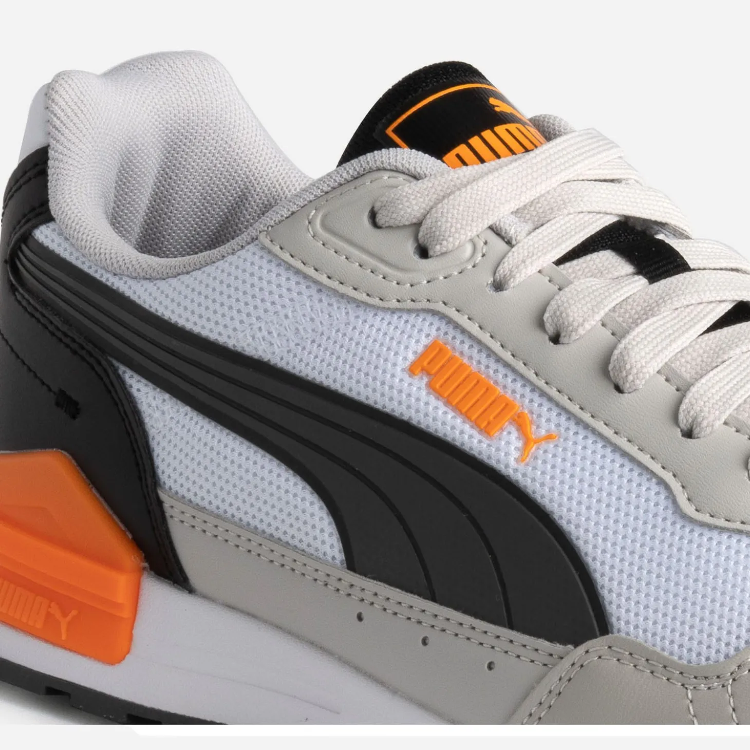 Par sa forme dynamique et sa structure, le modèle Graviton s’inspire des anciens modèles de running de PUMA. Elle est constituée d’une tige en matériaux synthétiques mélangés, qui associe le gris, le blanc et le noir à des touches d’orange. La semelle légère en IMEVA et la semelle intérieure SoftFoam+ participent à un nouvel élan à chacun de vos pas.