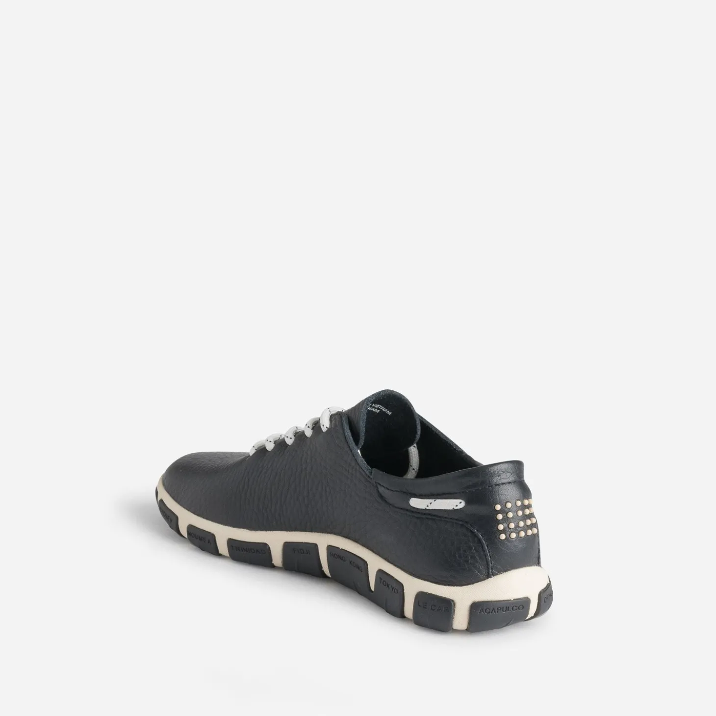 Adoptez, sans attendre, cette tennis pour femme en coloris bleu marine, avec lacet rond délicatement rayé et semelle bicolore. Signé ‘Les Marinières’, cet iconique de la marque conçu entièrement en cuir et non doublé, est reconnu pour sa légèreté, sa souplesse et sa résistance. New York, Hawaï, Saint Malo ou Hong Kong, voyagez le pied léger !
