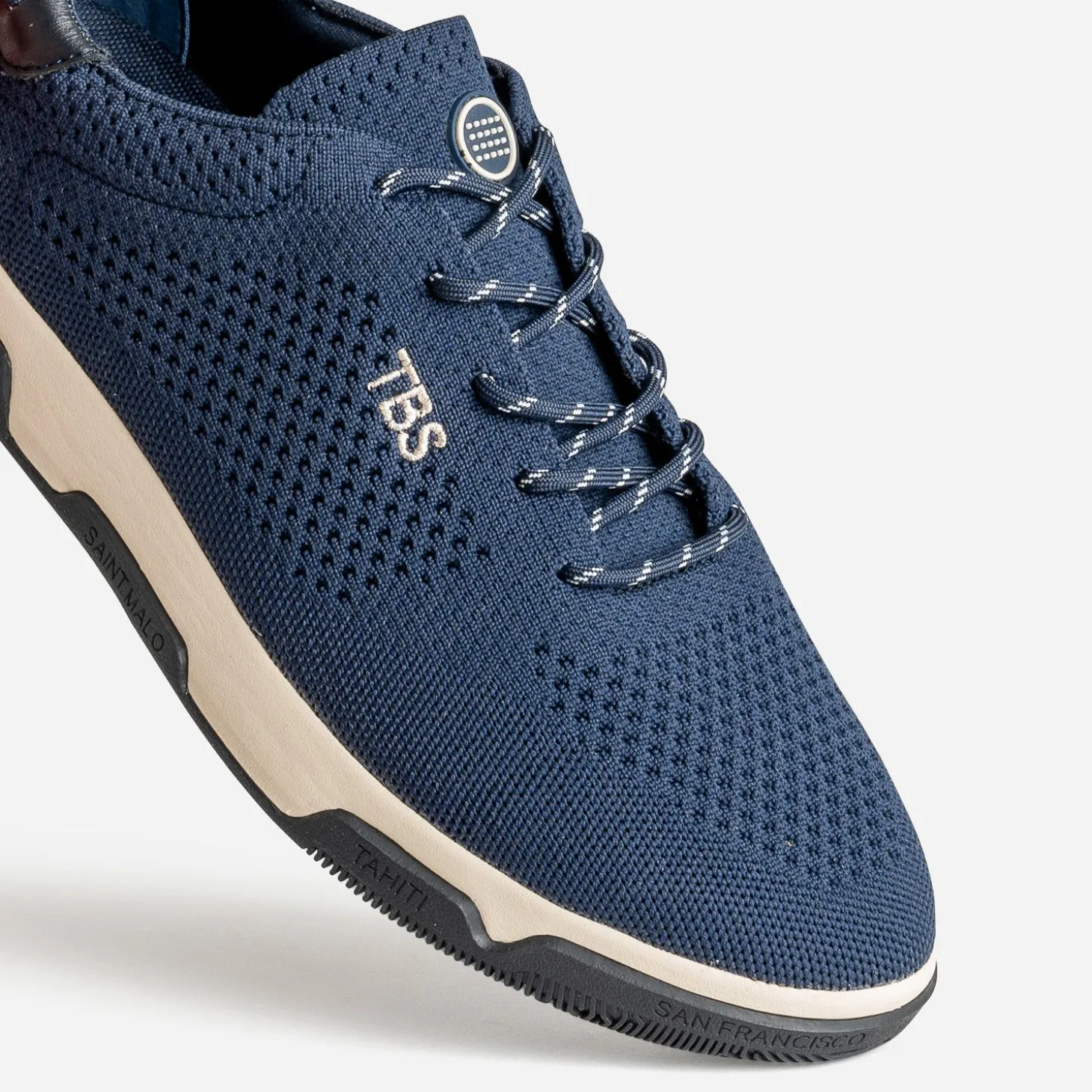 Inspiration nautique pour cette tennis homme, fabriquée en tricot de fils en polyester recyclé. Elle est montée sur une semelle légère en EVA, avec patin doté de la technologie Technigrip® permettant une adhérence optimale, et la semelle intérieure est amovible. Bleu marine, elle est signée des 20 points identitaires sur le contrefort, et de noms de ports localisés autour du monde, sur les bords de la semelle. Un modèle d’une incroyable légèreté, idéal en bord de mer.