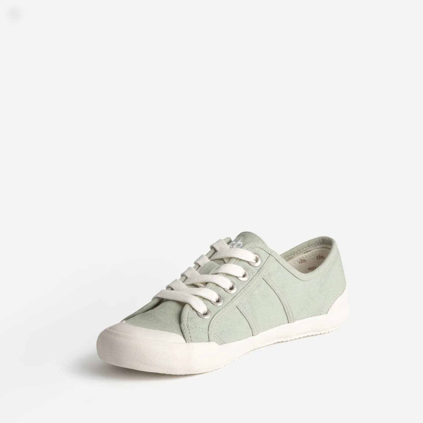 L’incontournable tennis en toile va vous séduire ! En coloris vert sauge, elle est rythmée de surpiqûres sur les côtés et renforcée de caoutchouc sur le bout et le contrefort pour plus de résistance. Un modèle qui se porte au quotidien pour un look casual et tendance, empreint d’une touche de chic.