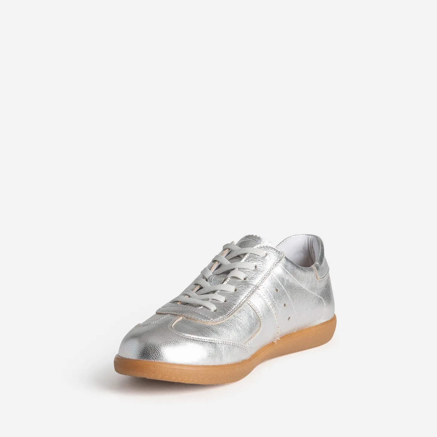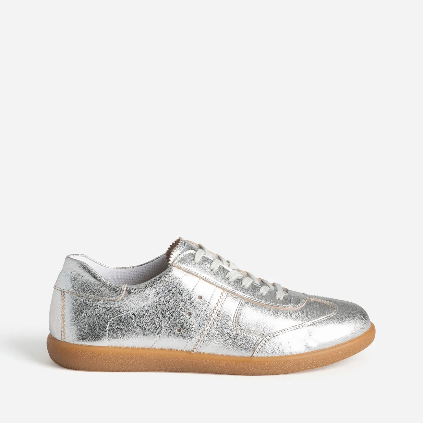 Impossible de ne pas se laisser tenter par cette tennis pour femme. En cuir souple, rythmée de découpes placées, elle propose une variation gris métallisé, sur une semelle extérieure camel, tandis que la semelle intérieure est amovible. Un modèle très actuel, à privilégier avec des nuances de gris et de blanc.